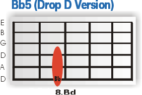 Die drei Powerchords stammen aus der Tonart Bb-Dur. Und genau diese bildet auch die Basis des Solos. Hier die "Main-Scale" im Detail: |