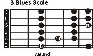 Das Tonmaterial für Lennys Soloexkurs stellt die B-Blues Scale. Das Solo startet mit einem Auftakt innerhalb des Übergangs zwischen Strophe und Refrain. Den zweiten Takt bestreitet Lenny mit einem coolen Bending-Lick. Achte beim Üben auf eine möglichst "smoothe" Ausführung. Greife dabei zunächst das "E" im 9.Bd der G-Saite mit dem dritten Finger und bende die Saite solange bis ein "F#" erklingt. Jetzt hältst du den "Draht" bis unmittelbar vor dem nächsten Bending gezogen, entspannst ihn "blitzschnell" und bist so gerade wieder rechtzeitig am Start, um "in TIme" auf der "4" ein neues Bending anzusetzen. Nach dem "Ganzton-Zieher" (wieder von E auf F#) entspannst du die Saite (ohne den Druck nachzulassen). Dieses Rebend (RB) führt dich zurück zur Ausgangsbasis unserer Bending-Attacke - dem E im 9.Bund der G-Saite (zweite Sechzehntel der "4").Jetzt ziehst du den Ringfinger von der Saite (Pull OFF)und beendest das Pattern mit der klingenden "7" . Und Achtung: Damit es richtig cool klingt, solltest du nur den ersten Ton des Bending-Lix anschlagen (das E auf der "4"- die Vorschlagnote").