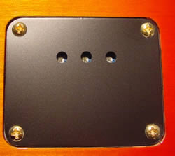 Besonderes Interesse weckt der unscheinbare Minischalter. Er ist das sichtbare Zeichen eines ganz speziellen Features der Texas Serie: Des VSC Preamp. Der zuschaltbare Preamp wird von einer 9V Blockbatterie gespeist und mit Hilfe des angesprochenen Mini-Switches (On/Off/On) scharfgeschaltet. Der Preamp bietet die Möglichkeit die drei Basis-Frequenzbänder Bass, Mitten, Höhen um bis zu 6 dB zu boosten- sie also zu verstärken. Anhand des bereits beschriebenen Bedienpanels auf der Rückseite der Blade, lassen sich die Verstärkungsfaktoren der 3 Bänder unabhängig voneinander regeln. Diese Maßnahme versetzt den User in die Lage, die unterschiedlichsten Klangvorstellungen zu realisieren und so die Flexibilität des Instruments spürbar zu erhöhen. Fristeten boosterbestückte Gitarren in der Vergangenheit eher ein Schattendasein, scheint das Konzept Gary Levinsons tatsächlich aufzugehen. Der Preamp ist eine Zugabe, die man optional zum Einsatz bringen kann. Bei ausgeschaltetem VSC Booster (und auch bei leerer Batterie) bietet die Texas alle Vorzüge einer "normalen" Gitarre. Aktiviert man den Preamp, so kann man umgehend auf die unterschiedlichsten Preset Sounds zurückgreifen. Und die können auch schon mal eine Spur krasser ausfallen. Nach getaner Arbeit schaltet man wieder auf Passiv-Betrieb und schon bedient die Axt wieder auf gewohnt klassische Weise. Dabei ist das Schaltungs-Layout so ausgelegt, dass es gleich zwei unterschiedlich voreingestellte Preseteinstellungen zur Verfügung stellt. In der Up-Position des Mini-Switches (Schalter nach oben), lässt sich ausschließlich das Bass- und Höhen- Band beeinflussen. Schaltet man in die Down-Position, so wird das Mitten-Band aktiv. Auf diese Weise lassen sich -unabhängig voneinander- jeweils zwei sehr unterschiedliche Preset-Sounds einstellen und bei Bedarf per Mini-Switch-Klick abrufen. Hier ein kleine Auswahl der möglichen Klangcharakteristika:
