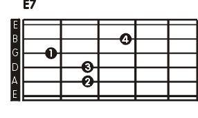 Soviel dazu. Ein bisschen Eigenwerbung darf ja schließlich auch mal sein! Jetzt aber los. Der Song mit dem wir uns in dem Workshop 2-Teiler beschäftigen wollen hört auf den Namen Just A Sad Song und rangiert in der Kategorie "Instrumental-Schmachtballade". Bevor wir aber ans Eingemachte (in diesem Fall das Solo) gehen, wollen wir uns heute zunächst einmal um die Akkorde des Begleit-Trax kümmern. Hier die sieben Teile, im typischen Griffbrett-Design.