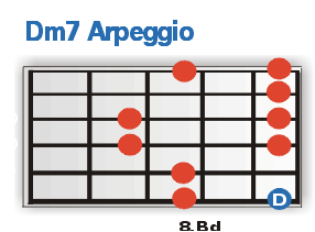 PG Arpeggio Zone Seite 2Den Anfang wollen wir heute mit den wichtigsten Fingersätzen eines Dm7 Arpeggios machen. Lerne die Teile auf jeden Fall auswendig und vergiss nicht, dir auch die Lage der einzelnen "Grundtöne" (blau eingefärbt) einzuprägen. Schließlich willst du die Arps ja nicht nur als Dm7er zum besten geben, oder?! Trainiere alle dargestellten Arpeggien so, wie wir es dir auf der letzten Seite vorgemacht haben: Also einmal schlicht und ergreifend Ton für Ton rauf und runter und dann in den spannenderen und spieltechnisch wesentlich anspruchsvolleren Vierergruppen. |